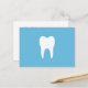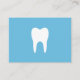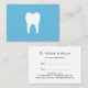Modern, simple yet elegant dentist appointment cards featuring a white tooth silhouette on a blue background. You can also upload your own logo. Customisable text on the back. Template fields for dentist name, time and date for appointment, and contact information.