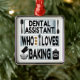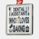 This baker design featuring the quote "Dental Assistant Who Loves Baking" on top of cookie trays surrounded by baking utensils is perfect for any Dental Assistant who loves to bake.