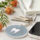 Customise this dental care theme keychain featuring a modern molar with a touch silver outlining the tooth on a abstract line background. The shade of blue makes the tooth stand out but the colour can be changed as desired. Add a name to the back of the keychain to personalise it.