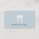 Customise this professional minimalist style dental appointment card featuring a classic white tooth motif with some subtle white wavy lines for accent on a light blue/grey background accented with a stylish font featuring Dr.'s name. Personalise it with your dental care business details as needed. The back features an area for the patient's next appointment with areas for writing date and time.