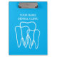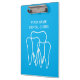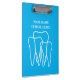 Custom dentist, dentistry and dental office accessories clipboard for office planning and other work schedules. Add your own name, quote, business name or company slogan. Blue double sided tooth logo print with modern typography template. Personalised supplies for dental hygienist, assistant, medical doctor, store, shop, clinic etc.