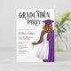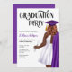 Dental School Graduation Party Invitation. Female Dental Dentist School Graduation Invitation for grad parties celebrating women who just graduated from dentistry school. Celebrate the new DDS in your life with this dentistry school grad party invitation! Featuring a portrait of a curvy dark skin woman wearing a white dress, a purple graduation robe draped over her shoulder, and a matching purple graduation cap. She holds dental equipment in her hand. The perfect Nurse Invitation for your daughter, niece, mother, aunt, cousin, or friend who just graduated from dental school.