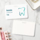Name tag with an illustration of a dental tooth. Drawn with a green gradient outline.