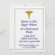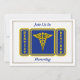 This blue and gold invitation is decorated on the front with a gold caduceus shiled. You can customise this card by placing your information into the boxes provided.