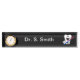 The nameplate looked exactly as pictured, I was very happy with this product! It also arrived promptly after placing my order! I would definitely recommend this product! The printing turned out exactly as I designed it, very pleased!