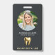 Modern, professional, and elegant dentist office photo ID badge. This design features a single photo, name, title, and business name on the front, complemented by a gold tooth logo on a dark background. Further personalise the back with your address. This ID badge is perfect for dental office employees, offering a sophisticated and cohesive look for your team.