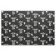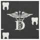 fabric featuring the universal symbol for dentistry and a tooth and a diagonal cross pattern on a black background.