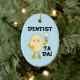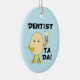 Dentist text and an egghead triumphantly holding a large tooth up high, and the words, "Ta Da!",is a humourous gift design for dentists and dental students at back to school, birthdays, holidays and graduation.