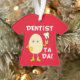 Dentist text and an egghead triumphantly holding a large tooth up high, and the words, "Ta Da!", is a humourous design for dentists, oral surgeons, endodontists, and dental students at back to school, birthdays, holidays and graduation.