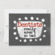 A fun dentistry themed typographic piece with the words "Dentists Really Aren't So Bad". It's grey and white with black and red text and white whimsical dots surrounding the phrase.