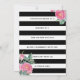 This Derby themed party invitation has a chic look using classic graphics and modern typography. In colours of soft pink, antique gold and black, the front wording reads: "Talk Derby to me" followed by "Break out the mint juleps and the big hats...you're invited!" The lower half of the front is fully customisable with your own party information, just use the easy, provided templates to personalise. The back side features a wide stripe pattern in black and white with feminine pink roses peeking from two corners, adding a softer girly look. The back side has more text templates where you can further customise with more party details if desired.