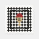 Derby cocktail party napkins feature a gold trophy filled with red roses on a black and white check background with your names and date in chic lettering.