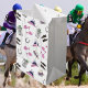 Introducing our chic and vibrant Derby Attire gift bags, perfect for celebrating the excitement of horse racing season! This unique design features iconic elements such as stylish hats, elegant shoes, colourful mint julep glasses, and silver horseshoes, all set against a vibrant white background. Whether you’re preparing for a Derby party or gifting a fashionable friend, this gift bag captures the spirit of the occasion while ensuring your present stands out beautifully.