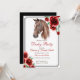 Derby party, horse, equestrian party invitation template. Simple, classical horse portrait with red roses flowers.