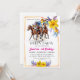 Modern Horse Race Derby Party Invitation with an illustration of a race horse with jockey and striped pattern on the back. All text elements can be changed so this design can be used for other events too: classy equestrian wedding invitation, horse birthday party, derby watch party, horse barn opening and more. Background, colour of the illustration and text colours can be changed using the design tool!