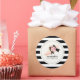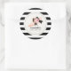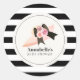 This elegant baby shower sticker features a a big derby style pink hat with roses and a black bow/ribbon on a white background with black stripes. Personalise for your needs. You can find more matching products at my store.