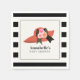 This elegant baby shower paper napkin features a a big derby style red hat with roses and a black bow/ribbon on a white background with black stripes. Personalise for your needs. You can find more matching products at my store.