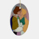 Oval shaped Christmas tree ornament featuring embracing animated characters, Princess Odette and Princess Derek, from The Swan Princess. The back of the ornament has The Swan Princess logo.