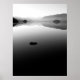 A single rock breaks the smooth surface of Derwentwater in this black and white photograph of the lake in winter.