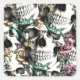 Descending layered rose skulls with butterflies from hand illustration in pink, mint, and yellow colour palette.