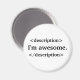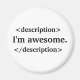 This magnet has a solid white background with simple black text as the foreground. It is a HTML pun where the owner is describing themselves as awesome (which they are).