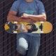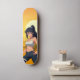 Skateboard de dessins animés japonais d'une jeune femme en plein soleil au milieu du désert dans une ambiance MadMax.