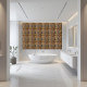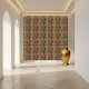 The carefully chosen colour palette of gold, blue, and coral enhances the artistic appeal. Ideal for those who appreciate history with a modern twist, this tile will add a touch of creative sophistication to any room.