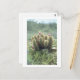 Soft pink flowers bloom from prickly branches of a cactus. The cactus thorns glow subtly from the back light. Colour photography of cacti taken in the Sonoran desert in Scottsdale, Arizona. Personalise the Arizona Sonoran desert postcards with your own text and images using the "Customise It" option.