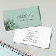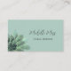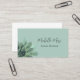 Succulent business card with a a green botanical design set on a green background. This piece has black elegant script typography lettering on the front of the card that is customisable. The back of the card has black customisable lettering on a white background. Great for advertising your business with a fun desert theme.
