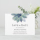 Botanical Greenery Wedding Save the Date announcement card with an elegant succulent design. With customisable lettering, you can add your names, and wedding information. Great for planning your special day with a desert theme.