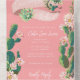 This cactus garden invitation is the perfect way to announce your desert wedding! It features a prickly pear cactus with pink blossoms. All the important wedding details can be personalised. Colours include green, pink, white and black.
