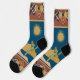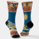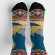 Desert Cactus Scene. Beautiful calming scene of desert scene with cactus with geometric pattern at top and bottom of socks in Blue, Gold, Linen. We've got quite a collection of unique socks for special occasions, fun, funky socks as well as the classics.