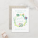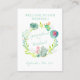 Matching table seating place cards for wedding receptions, parties or formal business events. Hand painted watercolor artwork by Audrey Jeanne Roberts is inspired by the time she spends each year in the Southwestern desert. A wreath of cactus and succulents in bloom have flowers of soft pink, peach and magenta along with leaf tendrils in greens and grey. Rustic worn grey wooden, reclaimed fence boards are featured on the reverse side. Easy to change out the text using the template fields. Copyright all rights reserved.