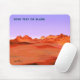 Vibrant orange and red image of a peaceful desert. The sky is bright blue. Customise by adding your own text. You may change the font, text colour and point size.