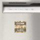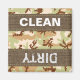 Magnet with military desert camouflage seamless pattern background and CLEAN / DIRTY text.