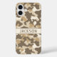 Customise this multi-hued brown desert camouflage iPhone 16 plus case with your name in a trendy modern CAP font in brown on cream. It's masculine and perfect for your favourite military, hunting, country or outdoorsman!
