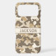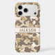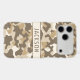 Customize this multi-hued brown desert camouflage iPhone 17 pro max case with your name in a trendy modern CAP font in brown on cream. It's masculine and perfect for your favorite military, hunting, country or outdoorsman!