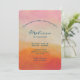 Birthday party invitation. An abstract painting done with acrylic paints. An abstract landscape with desert colours. Fiery orange red mountains wtih a sandy background and a pink cloudy sky.