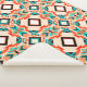 This is a design weaves teal, pink, white, and black into an attractive modern take with a traditional vibe.
