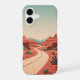 A soft retro illustration of a quiet curve along a sun-faded desert road.