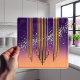 Achieve a look of architectural party glamour with our Mirror Lattice Tile. Featuring elegant gold geometric lines cascading down a vibrant purple to soft peach ombre background, this design evokes the glamour of the 1920s. Scattered crystal accents add a touch of sparkle and luxury, making this tile a perfect statement piece for any space. Whether you're adding a unique flair to your kitchen backsplash, a bathroom accent wall, or a decorative art piece, this tile brings timeless sophistication and a hint of dazzling charm to your decor. Designed for dopamine decor kitchens and party room interiors, it creates a seamless, joyful backsplash or a designer coaster set that catches the light and the attention.