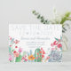 Desert theme wedding Save the Date card features a watercolor wildflower, cactus and succulent garden. Reverse side is a dusty blue watercolor print. Perfect for southwestern, California, summer, boho and rustic themes. Original artwork KL Stock.
