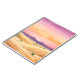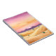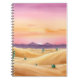 A calming desert landscape at twilight, featuring soft golden sand dunes and a pastel orange and pink sky fading into deep purple. Small cacti are scattered throughout, with distant mountains silhouetted against the sky. Perfect for travel journalling and desert-inspired notebook designs.