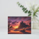 Step into the serene beauty of the desert at dusk. This postcard captures the breathtaking silhouette of towering cacti and rugged rock formations set against a stunning sky painted in deep orange, purple, and pink hues. As the sun sets behind the horizon, the desert landscape glows with a warm, golden light, creating a peaceful and timeless scene. Perfect for nature lovers, travelers, and those who find beauty in the quiet majesty of the desert.