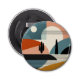 An abstract landscape of a desert scene with lines and shapes in shades of brown, orange, turquoise, beige, tan, and black.