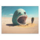 A desert monster house in the shape of a house, in the style of surreal seascapes, photorealistic renderings, light aquamarine and beige, playful character designs