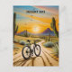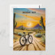sunset painting of a bicycle in the desert surrounded by cacti