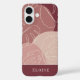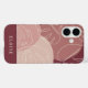 Modern boho style design features a background of organic shapes in muted shades of desert rose and dusty pink, overlaid with tropical monstera leaf illustrations. Personalise with a name or monogram along the bottom.