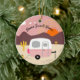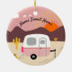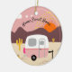 This cute ornament has a desert scene with a tiny travel trailer among the cacti. The sun is rising behind the mountains and a pink lizard looks on. Curved editable text says Home Sweet Home. This little ornament will look great on your tree and is also a tiny decoration for your RV, travel trailer or car.