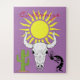 big sun, bent arms green saguaro cactus kokopelli and bleached bull skull to customise, personalise by changing to your name